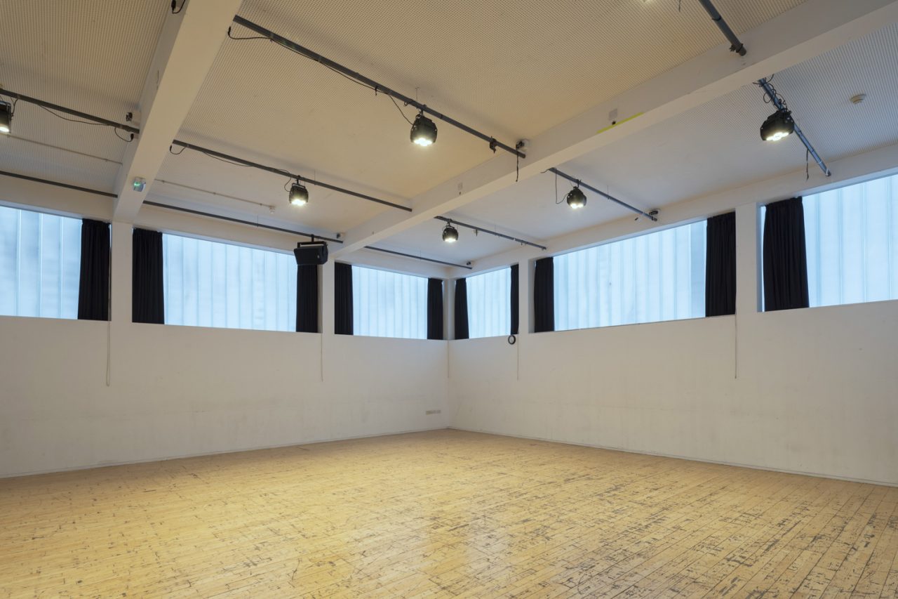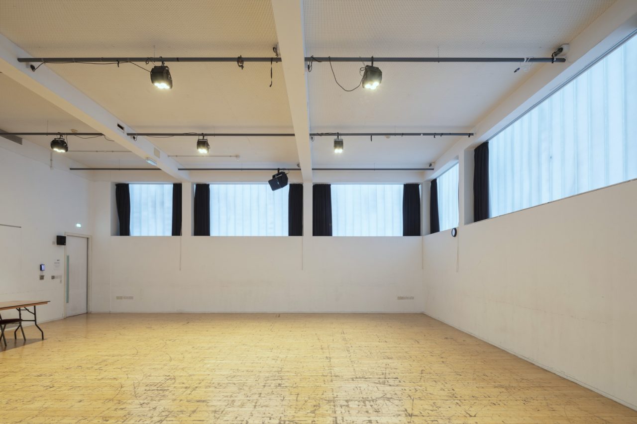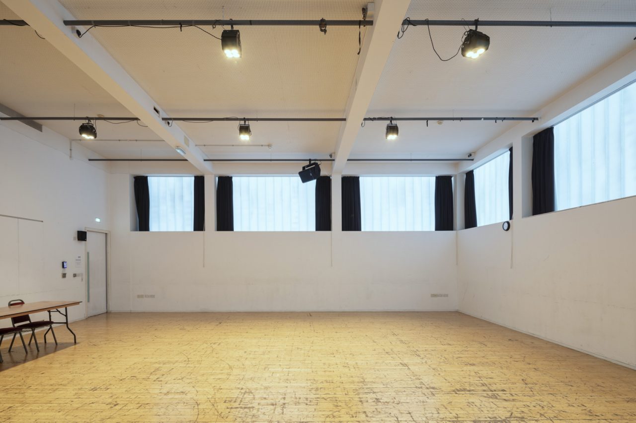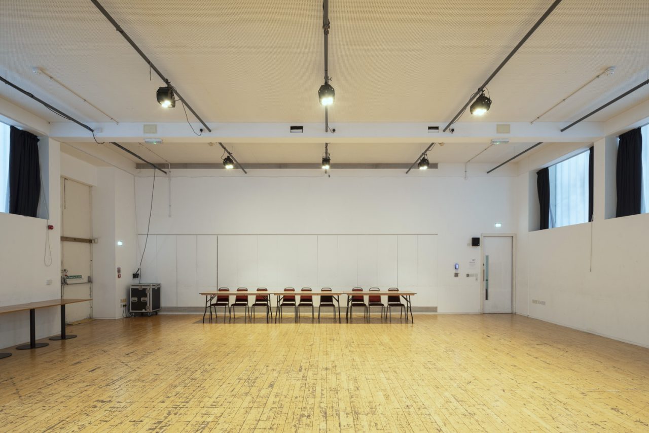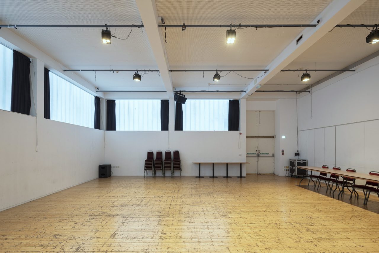 Rehearsal Room 1 is 11.5 by 10.5 metres and can hold up 80 people theatre-style.
